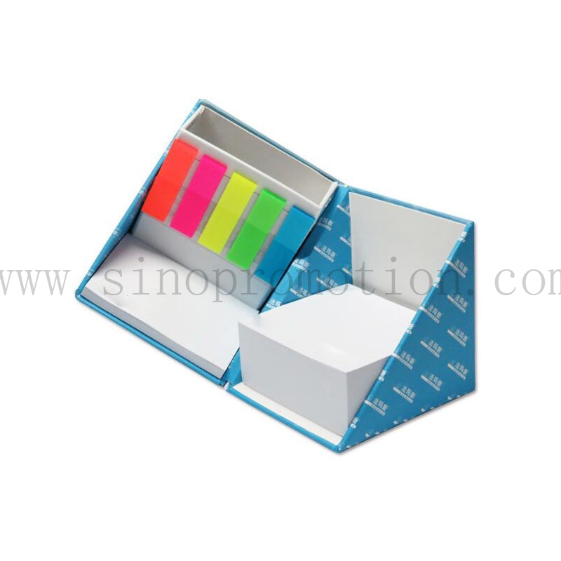 different size adhensive pads,3"x3" blank paper(500sheets),one 3" x 1.97" yellow pad (25 sheets), and five 1-3/4" x 1/2" pet flag (25 sheets)