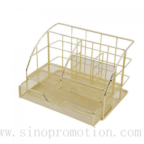 Desktop Organizer with 6 compartments,Made of sturdy steel mesh with a solid base,with a large sliding drawer